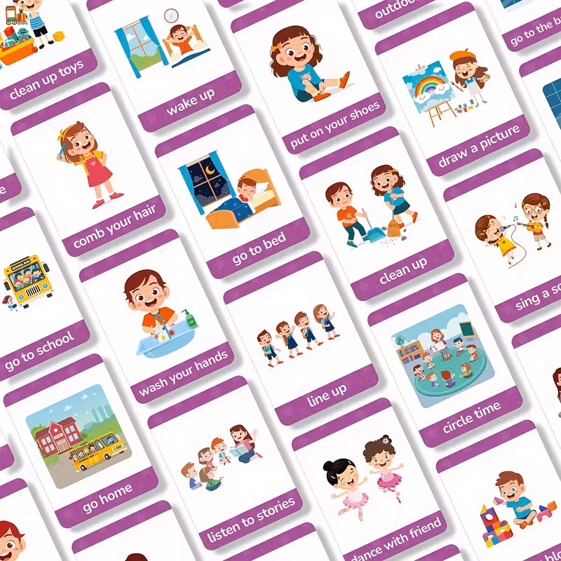 20pcs Daily Routine Communication Cards for Youngsters – Visual Aid Teaching Tools for Kindergarten, Speech Delay & Non-Verbal Special Education Kids with Illustrated Daily Activities (Mixed Colors, Cardboard)